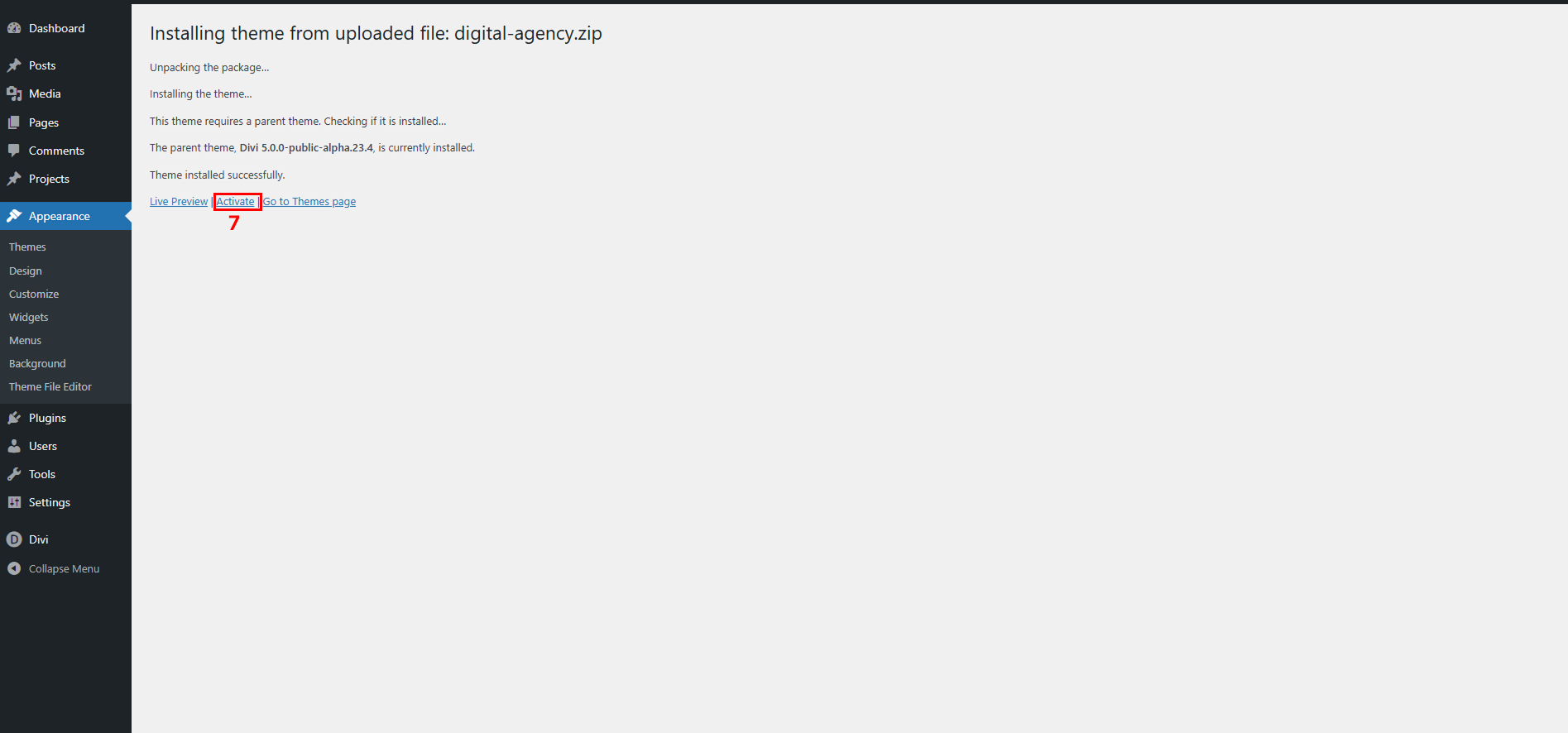 Step 2 – Installing Divi Child Theme