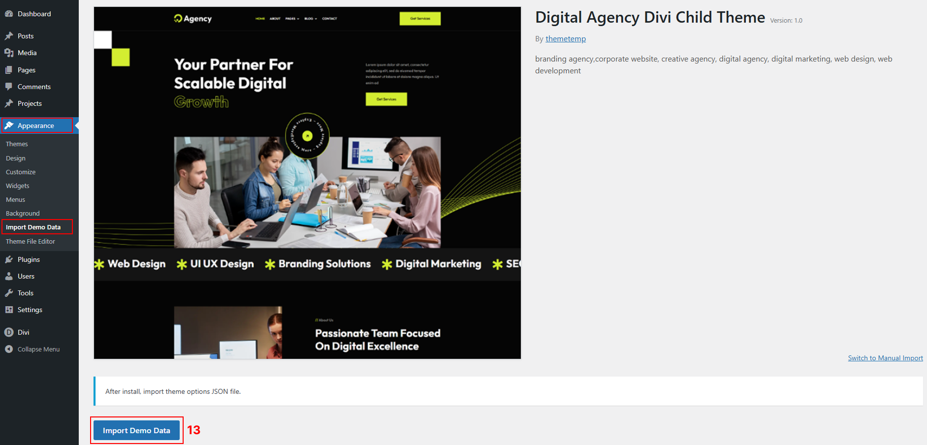 Step 4 – Import Theme Options