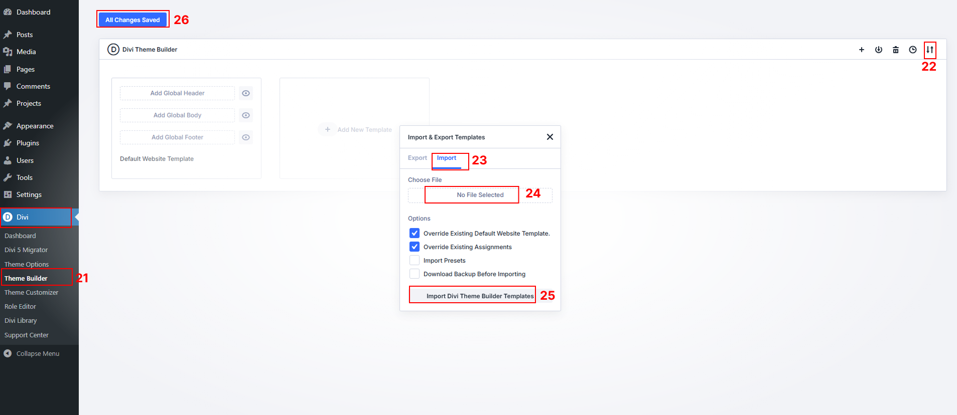 Step 5 – Import Theme Builder Templates